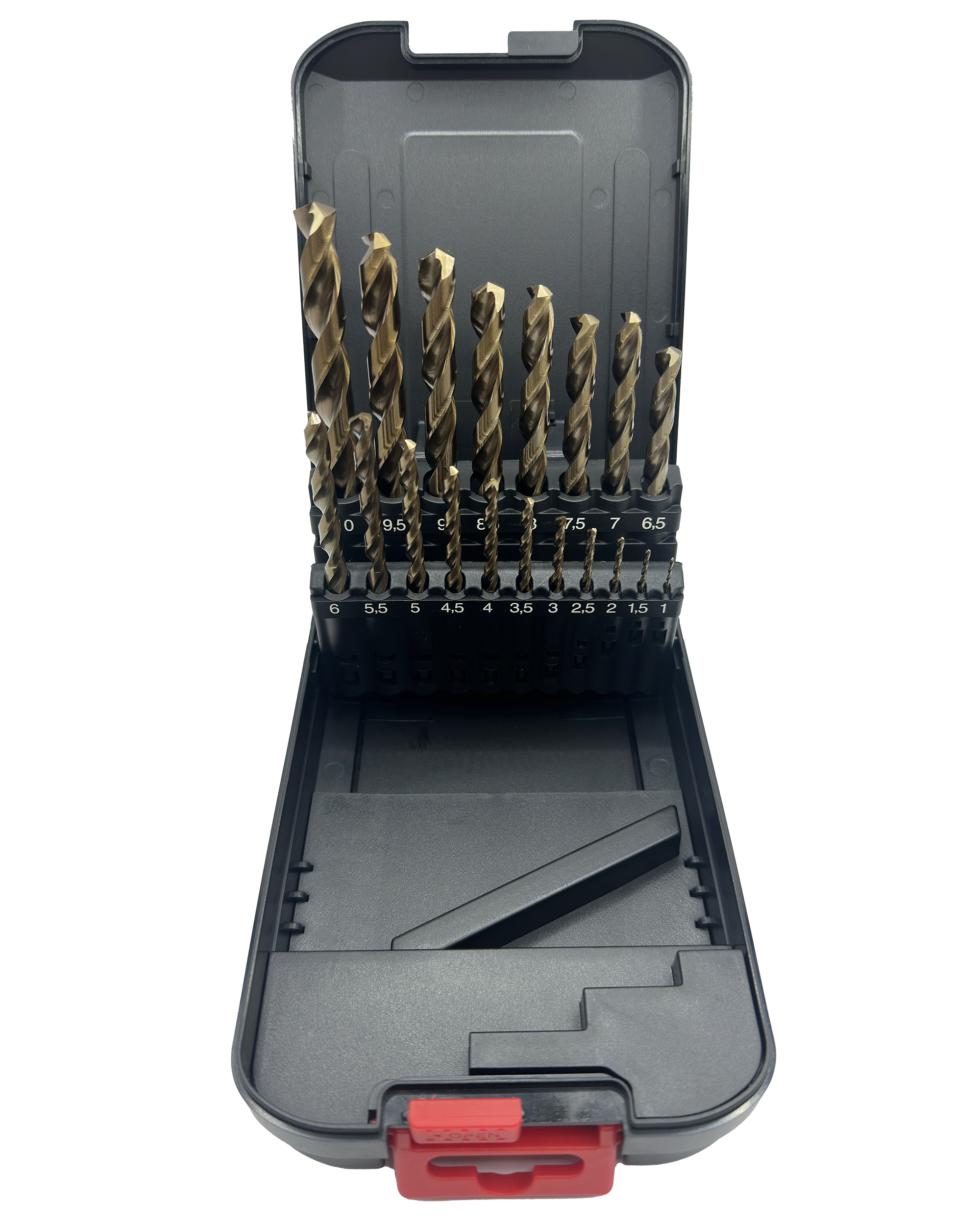 Abraboro HSS-Co 19 részes fémfúró készlet, műanyag dobozban