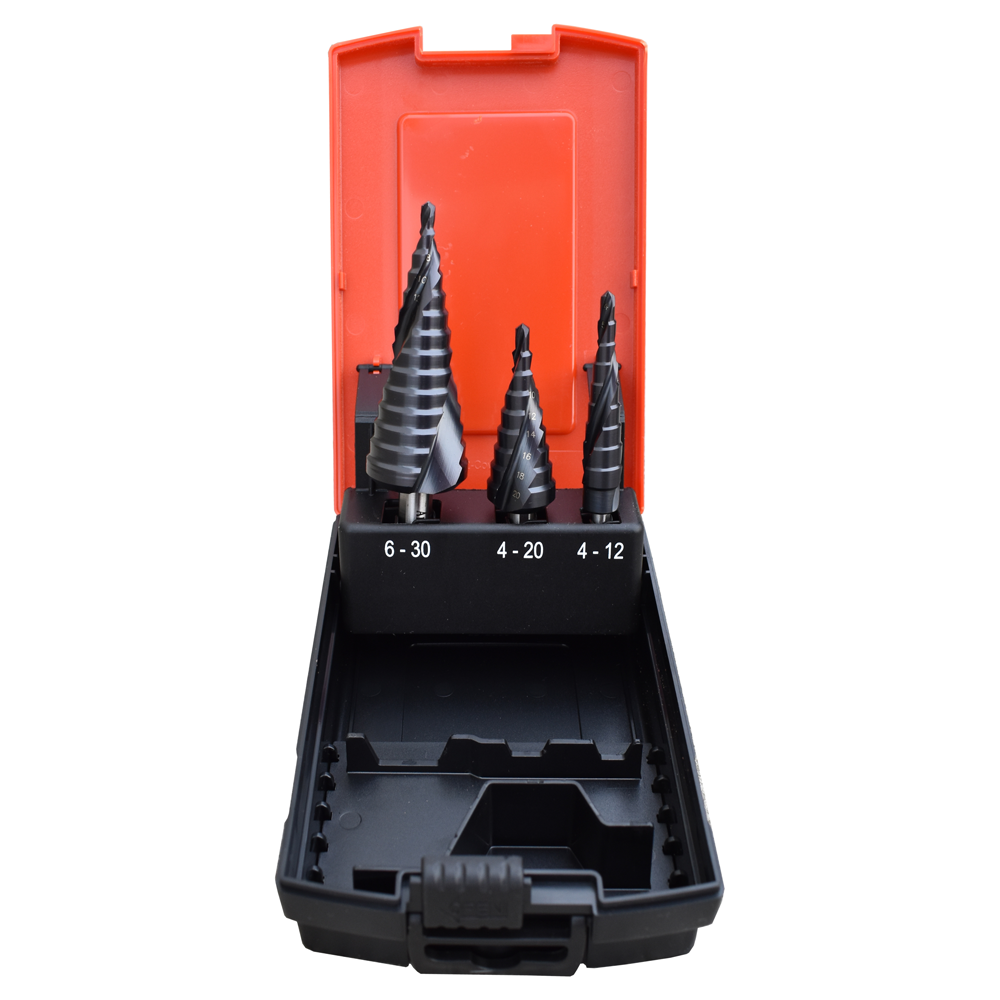- Professzionális minőségű lépcsős fúró Titán-Alumínium-Nitrid (TiAlN) bevonattal.