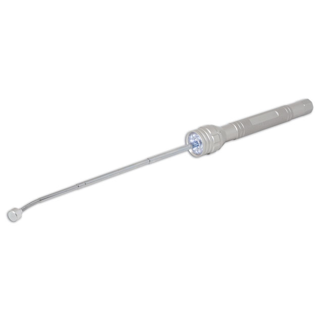 A lámpa fejében egy kihúzható teleszkópos felszedő mágnes található, az elején flexibilis kialakítással.
