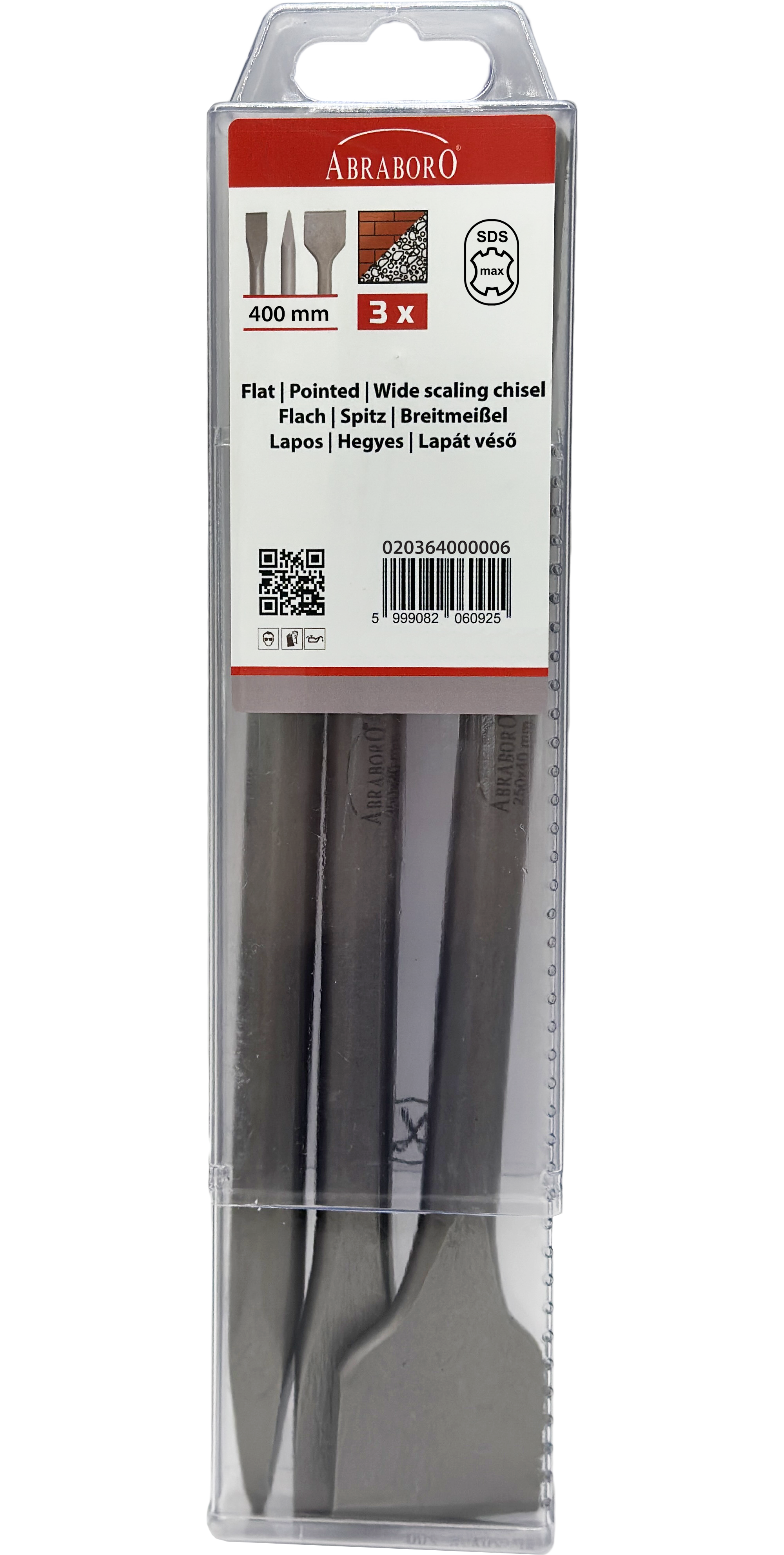 Abraboro SDS-max vésőkészlet (lapos, hegyes, lapát), 3 részes